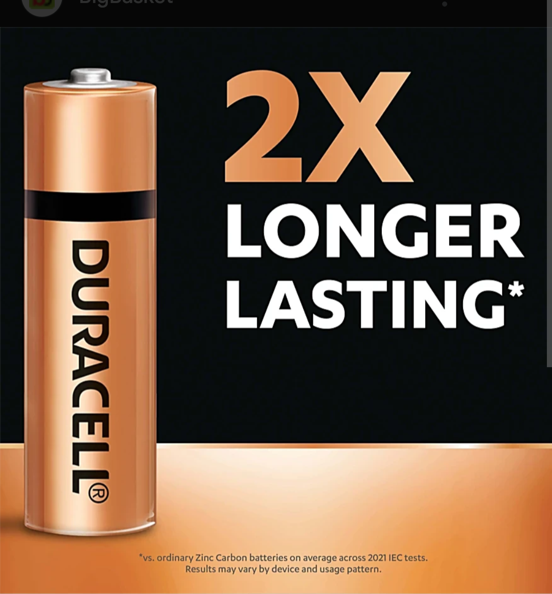 Original price was: ₹99.00.₹90.00Current price is: ₹90.00.Duracell AA